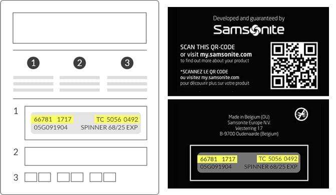 En la etiqueta interior de sus productos o en la tarjeta de garantía. La etiqueta interior la puede encontrar en sitios distintos en función del material del producto: en los bolsillos, debajo del forro o debajo de la tela de la maleta.